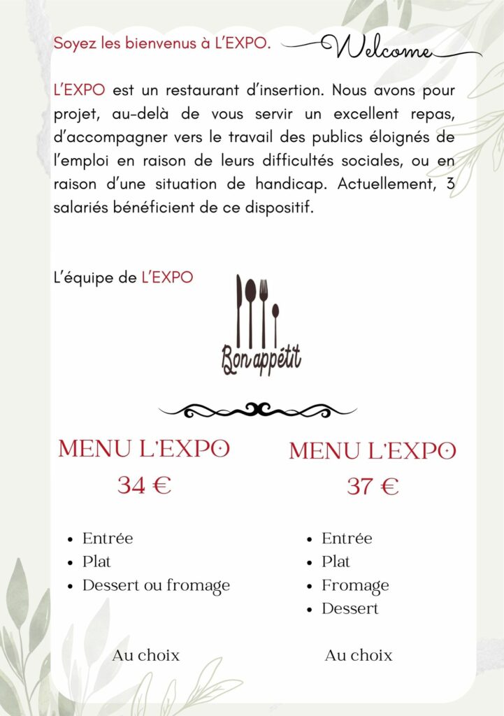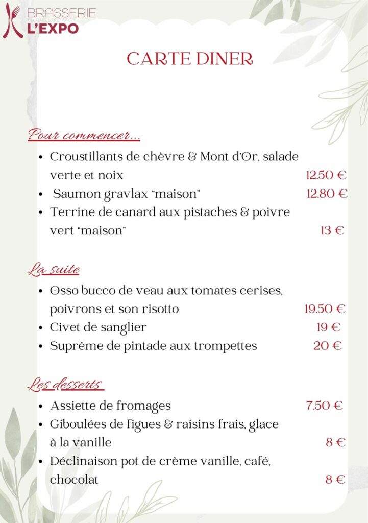 Nos menus sont susceptibles d’être modifiés selon l’arrivage des produits.