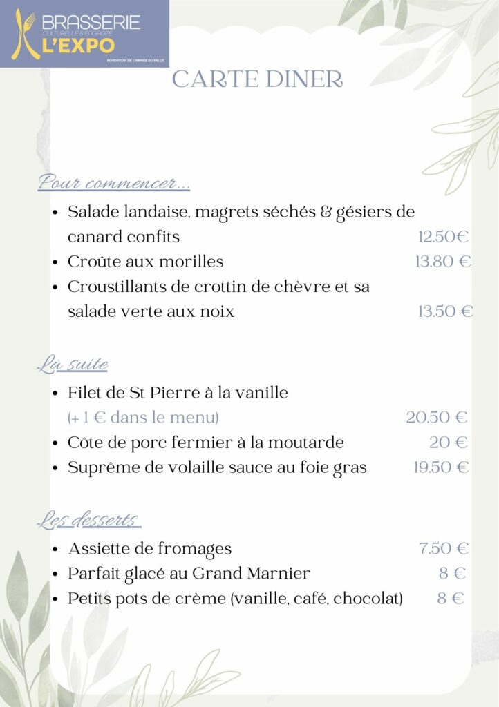Nos menus sont susceptibles d’être modifiés selon l’arrivage des produits.
